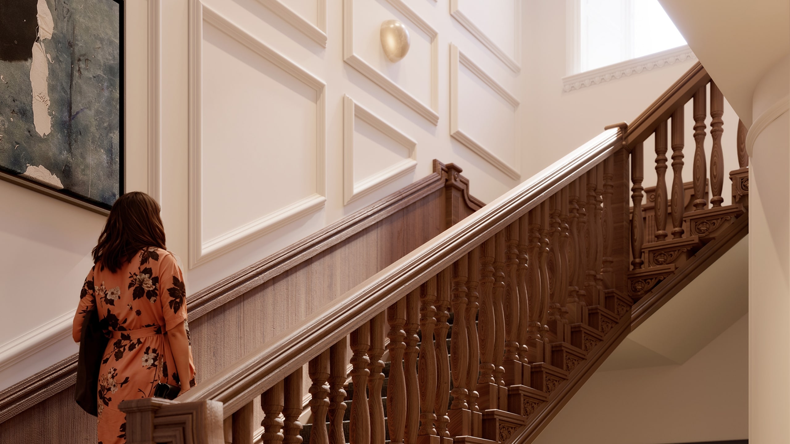 Feature grand solid wood staircase